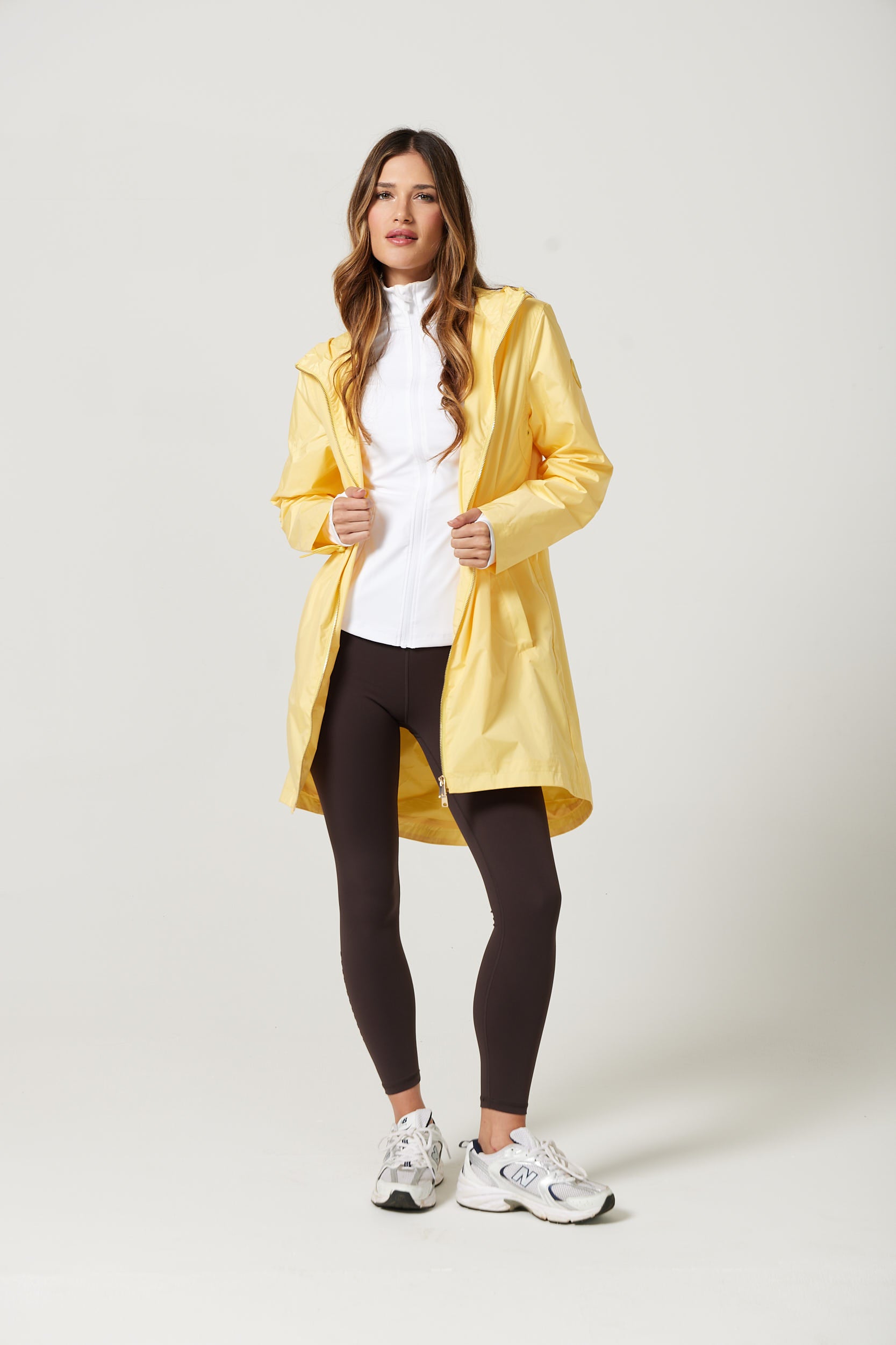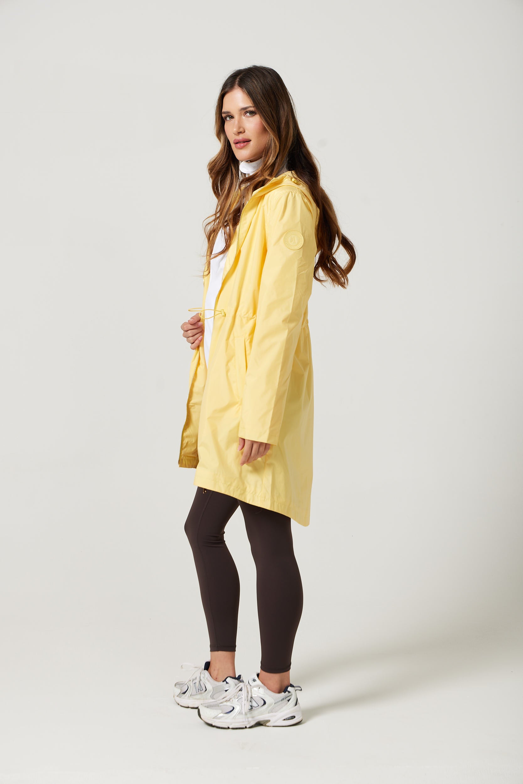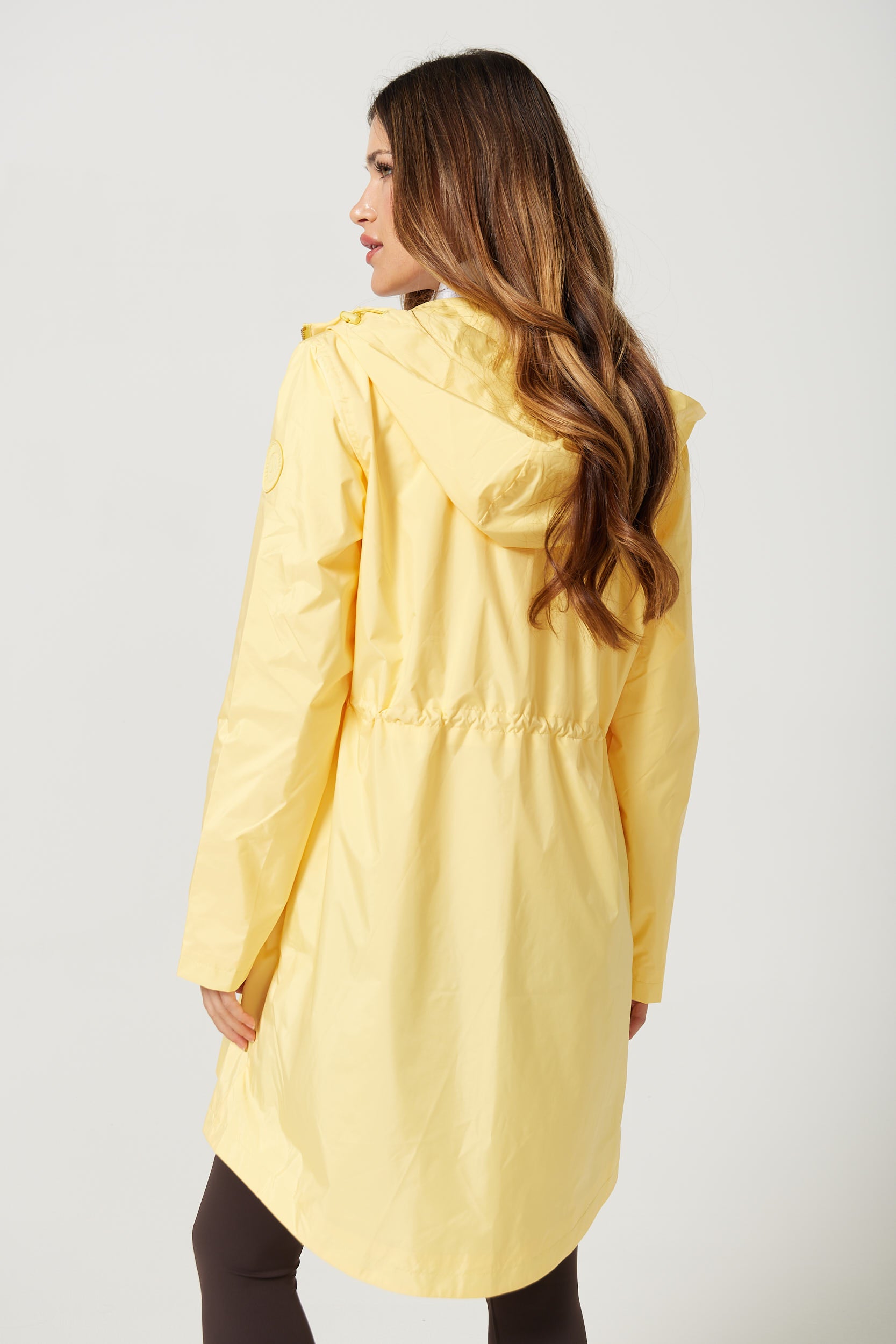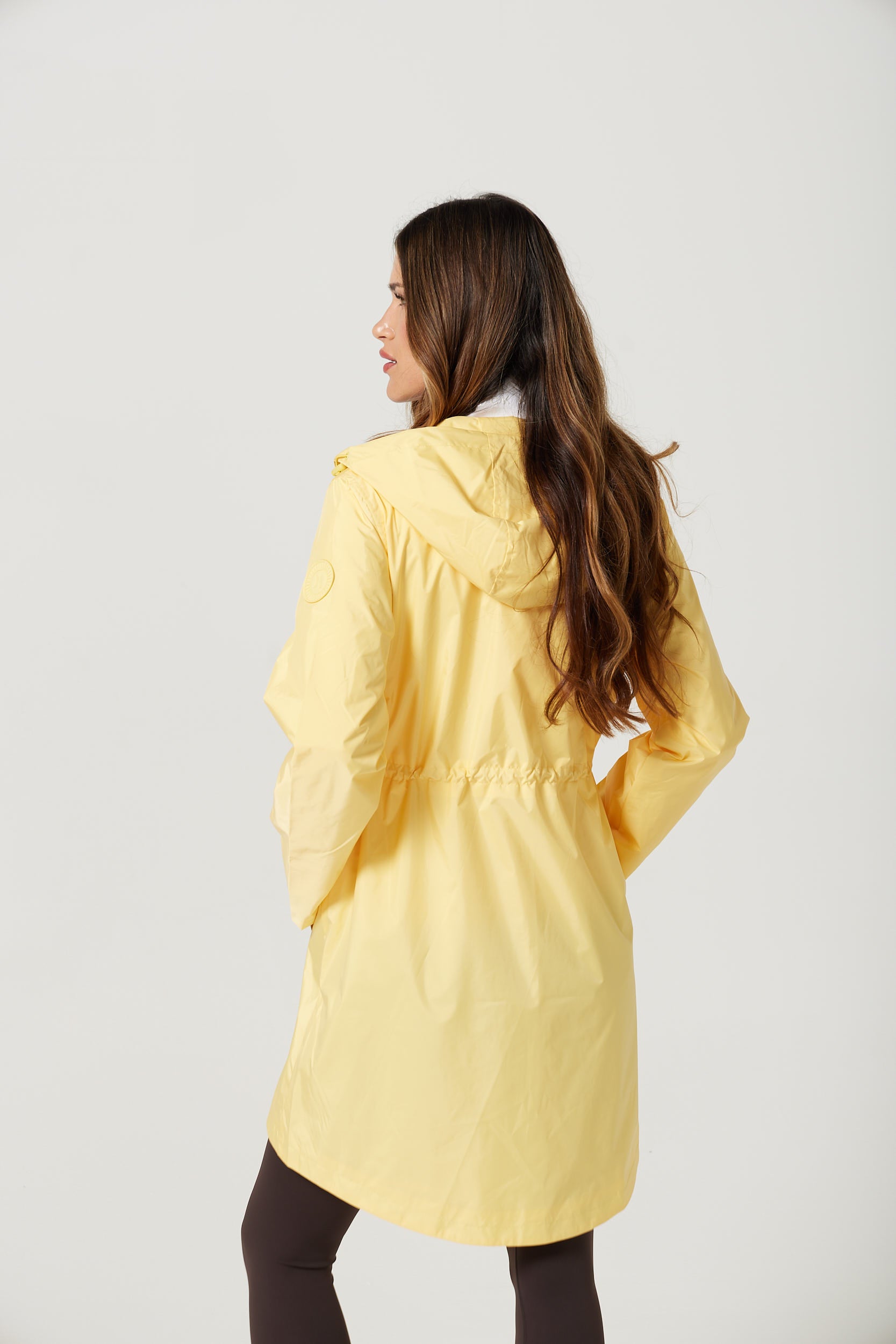 This mid-thigh raincoat combines style and practicality, keeping you dry throughout the year. Fully waterproof and featuring an adjustable hood, its sleek design offers reliable coverage and comfort while maintaining a flattering silhouette.