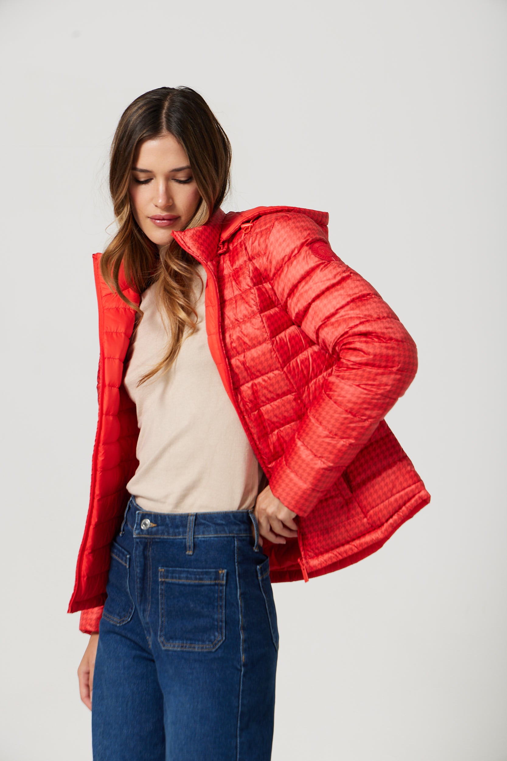 Warm, breathable and stylish, this duck down jacket is designed to keep you cosy in every season. Lightweight and insulated, it combines sleek design with function, offering a perfect balance of comfort and warmth for any occasion. Plus, this jacket is 100% reversible. Get double the style and extra warmth with this one-of-a-kind jacket.