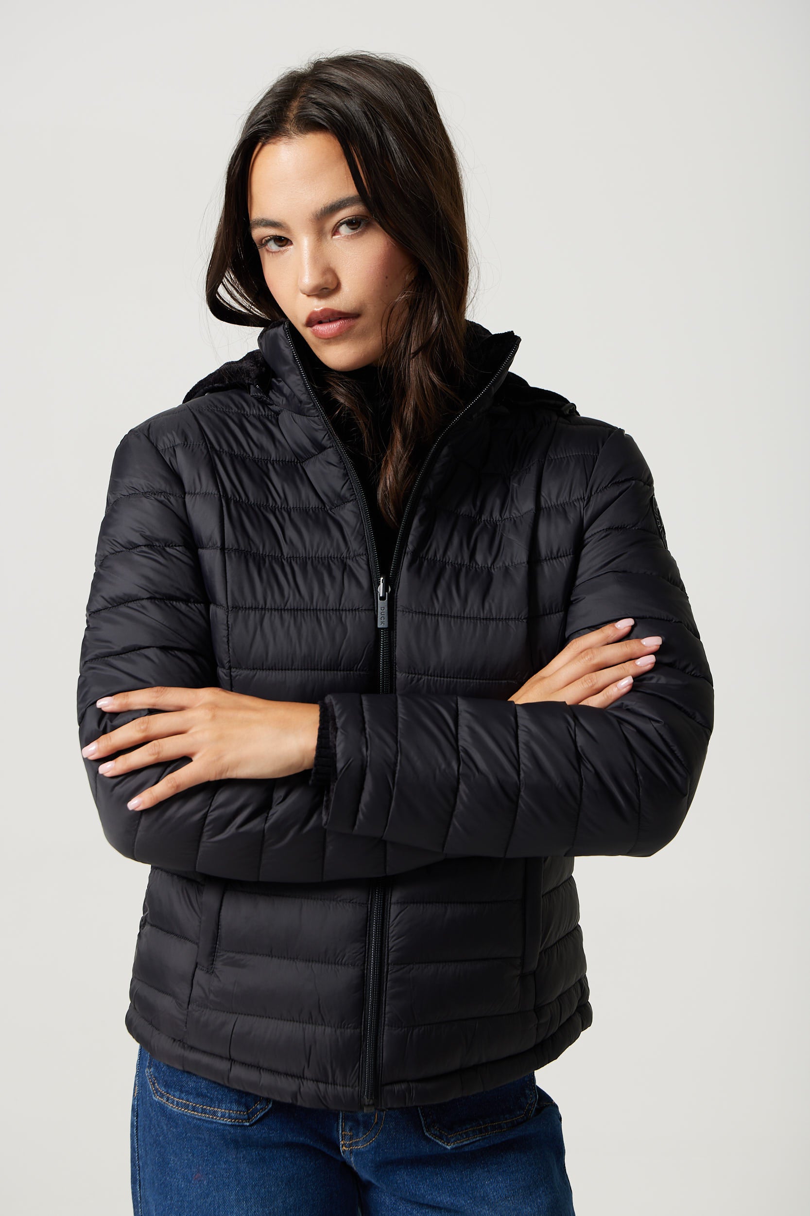 - Nylon Puffer Exterior – Sleek outer shell designed to help trap warmth and block cold air.