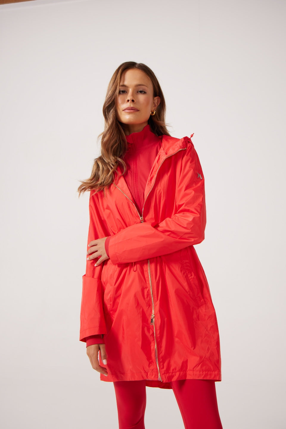 Umbala othakazelisayo we-sage wale ngubo yemvula ubonisa ubuhle kunye nokuguquguquka. I-hue yayo epholileyo idibanisa kunye nayo nayiphi na i-ensemble, iyenza ibe lukhetho oluguquguqukayo kuzo zombini iziganeko ezisemthethweni kunye nezesiqhelo. Nokuba uhamba ezitalatweni zedolophu okanye ubamba ubuhle bendalo, le dyasi yemvula incedisana nesimbo sakho esikhethekileyo.